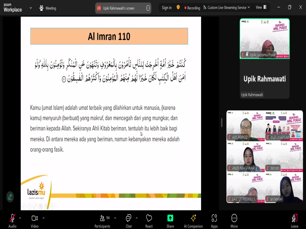 Jakarta, 26 November 2024 – Perkumpulan Organisasi Pengelola Zakat (POROZ) sukses menggelar diskusi lintas organisasi bertema "Srikandi Amil POROZ: Kontribusi Perempuan di Dunia Zakat" pada Selasa pagi. Acara yang berlangsung secara daring melalui Zoom ini menyoroti peran strategis perempuan dalam dunia filantropi Islam, terutama di sektor zakat, yang selama ini masih didominasi laki-laki.