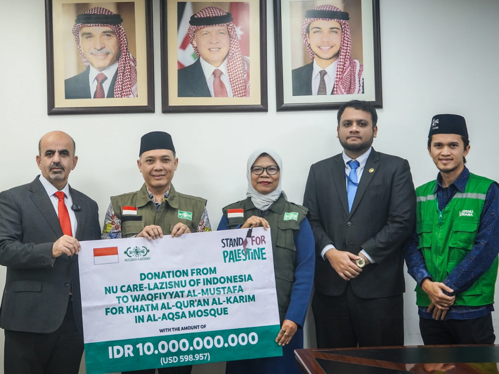 NU Care-LAZISNU menyalurkan bantuan kemanusiaan senilai Rp10 miliar untuk warga Palestina. Bantuan tersebut diserahkan melalui Waqfiyat Al-Mustafa, lembaga wakaf di Yordania yang didirikan oleh Pangeran Ghazi bin Muhammad bin Talal. Bantuan ini ditujukan untuk mendukung kegiatan keagamaan di Masjid Al Aqsa Palestina, khususnya program halaqah para pembaca dan penghafal al-Qur’an yang rutin dilaksanakan di kawasan Dome of the Rock, Yerusalem.